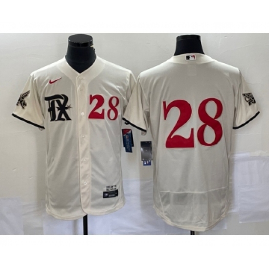 >Men's Nike Texas Rangers #28 Jonah Heim Number Cream 2023 City Connect Flex Base Stitched Baseball Jersey