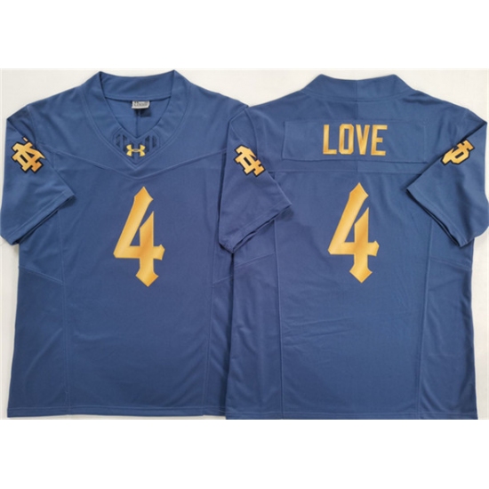 >Men's Notre Dame Fighting Irish #4 Jeremiyah Love Navy Blue 2025 F.U.S.E. Limited Stitched Jersey