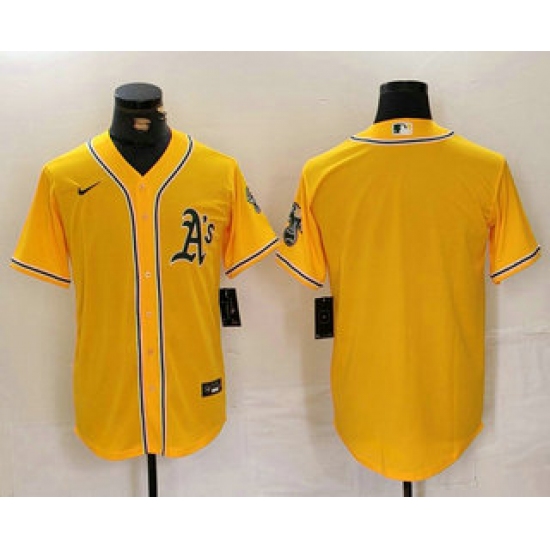 >Men's Oakland Athletics Blank Yellow Cool Base Stitched Baseball Jersey