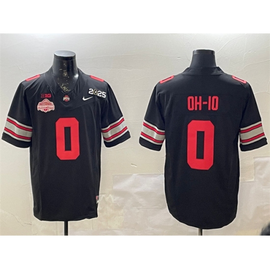 >Men's Ohio State Buckeyes #0 OH-IO Black 2025 CFP Final With National Champions F.U.S.E. Vapor Limited Stitched Football Jersey