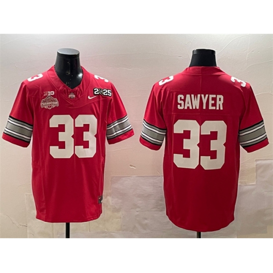 >Men's Ohio State Buckeyes #33 Jack Sawyer Red 2025 CFP Final With National Champions F.U.S.E. Vapor Limited Stitched Football Jersey