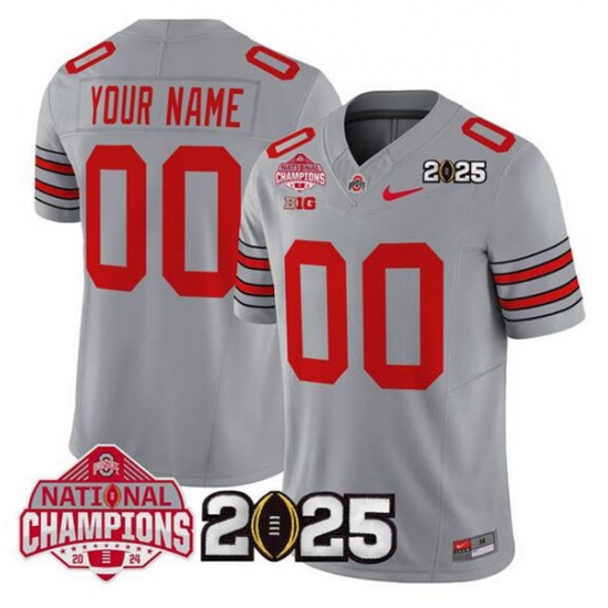 Men's Ohio State Buckeyes Active Player Custom Gray 2025 CFP Final With National Champions Patch F.U.S.E. Vapor Limited Stitched Jersey