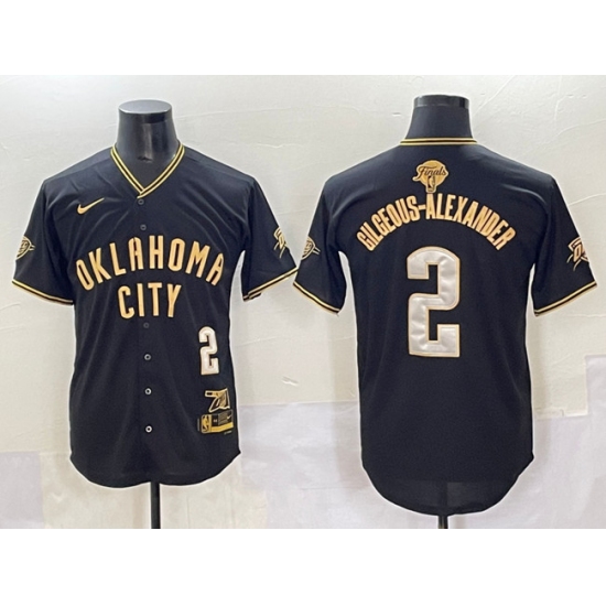 >Men's Oklahoma City Thunder #2 Shai Gilgeous-Alexander Black Gold 2025 Finals Vapor Stitched Baseball Jersey