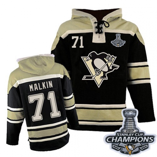 Home>NHL>Pittsburgh Penguins>Evgeni Malkin>Men's Old Time Hockey Pittsburgh Penguins #71 Evgeni Malkin Authentic Black Sawyer Hooded Sweatshirt 2017 Stanley Cup Champions