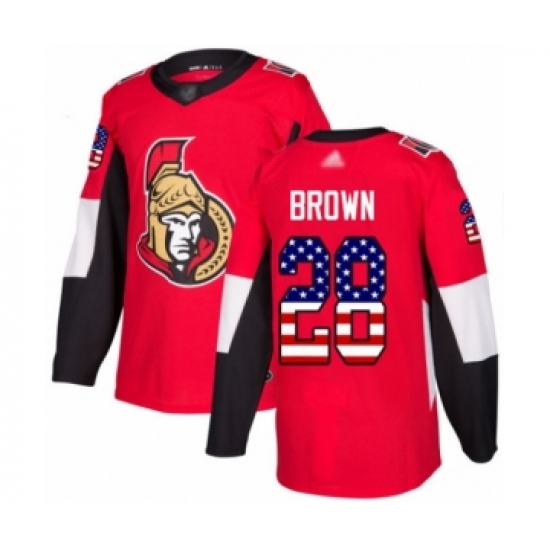 >Men's Ottawa Senators #28 Connor Brown Authentic Red USA Flag Fashion Hockey Jersey