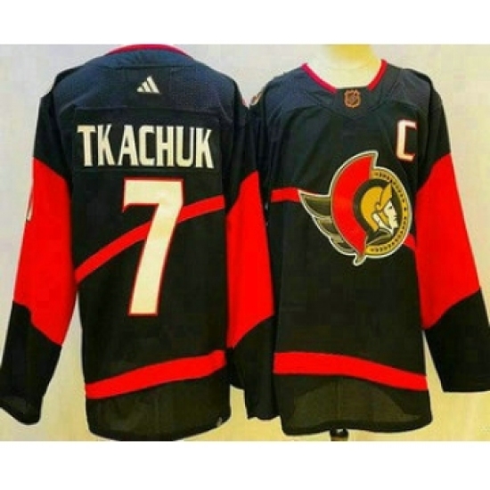 Men's Ottawa Senators #7 Brady Tkachuk Black 2022 Reverse Retro Authentic Jersey