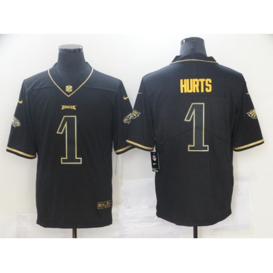 >Men's Philadelphia Eagles #1 Jalen Hurts Black Gold Nike 2020 Salute To Service Limited Jersey
