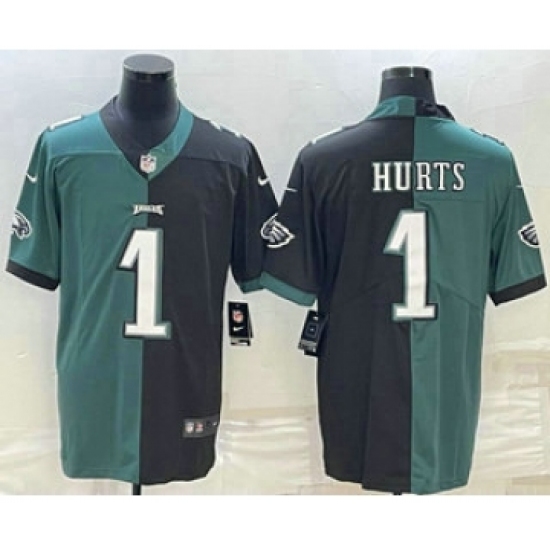 >Men's Philadelphia Eagles #1 Jalen Hurts Green Black Two Tone Vapor Untouchable Stitched Limited Jersey