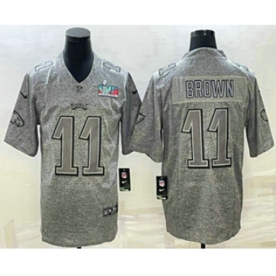 Men's Philadelphia Eagles #11 AJ Brown Grey Super Bowl LVII Patch Stitched Jersey