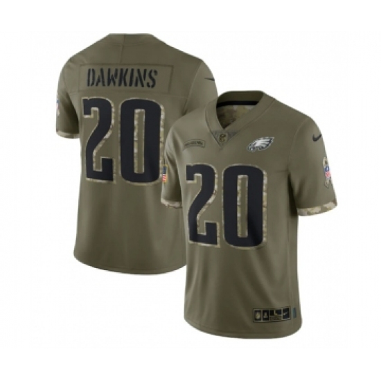 >Men's Philadelphia Eagles #20 Brian Dawkins 2022 Olive Salute To Service Limited Stitched Jersey