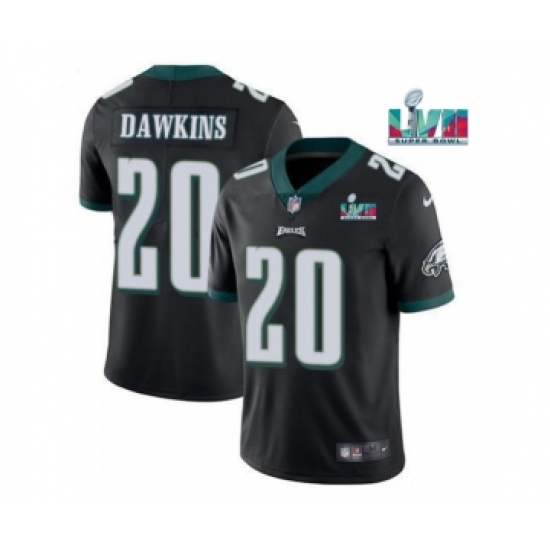 >Men's Philadelphia Eagles #20 Brian Dawkins Black Super Bowl LVII Patch Vapor Untouchable Limited Stitched Jersey