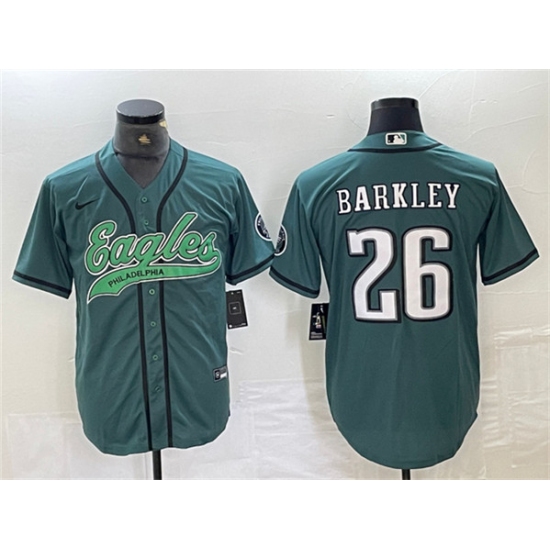 Men's Philadelphia Eagles #26 Saquon Barkley Green Cool Base Baseball Stitched Jersey