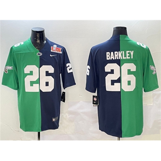 Men's Philadelphia Eagles #26 Saquon Barkley Green & Navy Split 2025 Super Bowl LIX Vapor Untouchable Limited Football Stitched Jersey