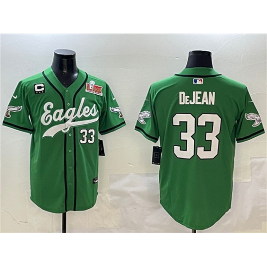 >Men's Philadelphia Eagles #33 Cooper DeJean Green 2025 Super Bowl LIX And 3-Star C Stitched Baseball Jersey