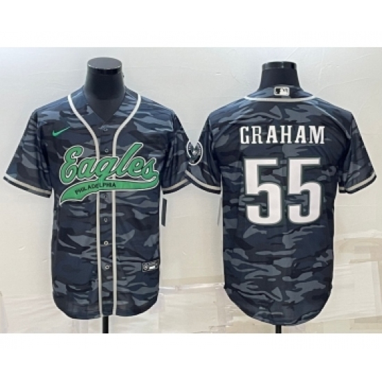 >Men's Philadelphia Eagles #55 Brandon Graham Gray Camo With Cool Base Stitched Baseball Jersey