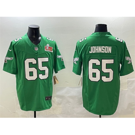 >Men's Philadelphia Eagles #65 Lane Johnson Green 2025 Super Bowl LIX F.U.S.E. Throwback Vapor Untouchable Limited Football Stitched Jersey