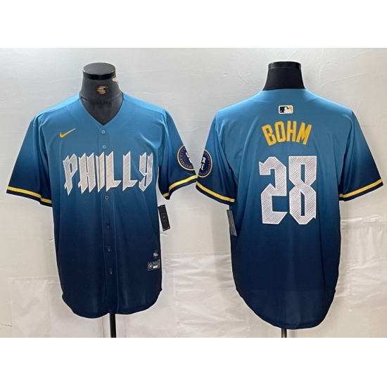 Men's Philadelphia Phillies #28 Alec Bohm Blue 2024 City Player Number Cool Base Stitched Jersey