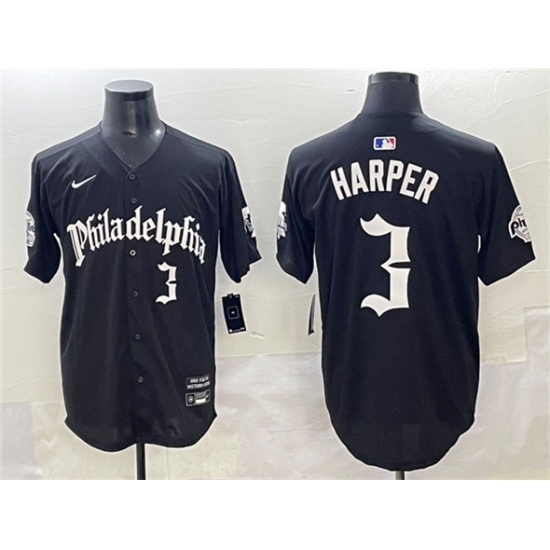 Men's Nike Philadelphia Phillies #3 Bryce Harper Black Alternate Stitched Baseball Jersey