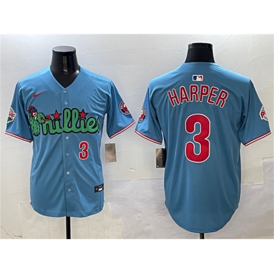 Men's Philadelphia Phillies #3 Bryce Harper Light Blue Phanatic Limited Stitched Jersey