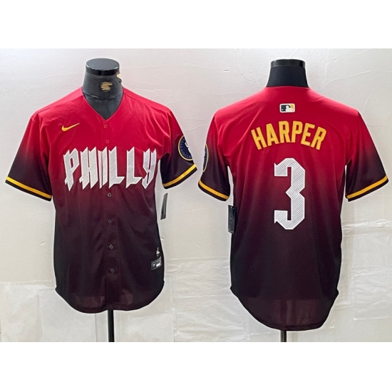 >Men's Philadelphia Phillies #3 Bryce Harper Red 2024 City Cool Base Jersey
