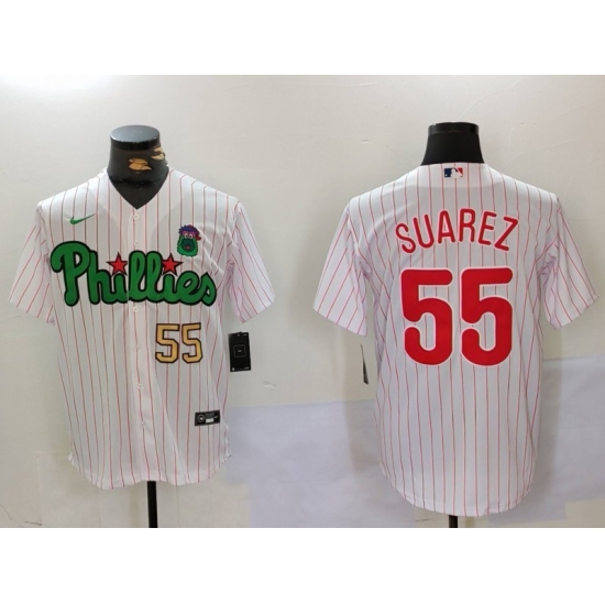 >Men's Philadelphia Phillies #55 Ranger Suárez White Green Cool Base Stitched Jerseys
