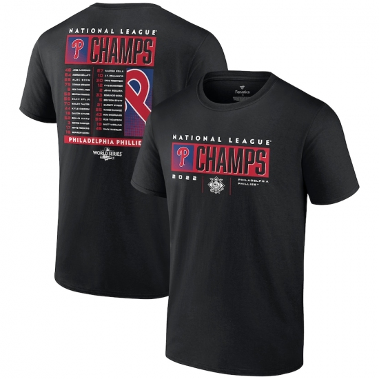 Men's Philadelphia Phillies Fanatics Branded Black 2022 National League Champions Roster T-Shirt
