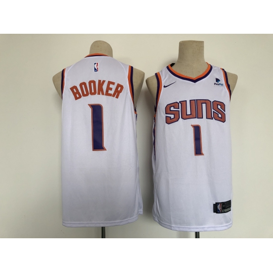 >Men's Phoenix Suns #1 Devin Booker Swingman White Basketball Jersey