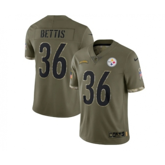 Men's Pittsburgh Steelers #36 Jerome Bettis 2022 Olive Salute To Service Limited Stitched Jersey
