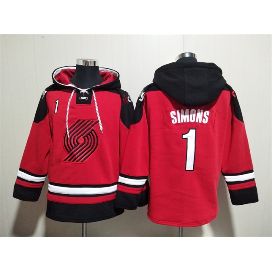 >Men's Portland Trail Blazers #1 Anfernee Simons Red Lace-Up Pullover Hoodie