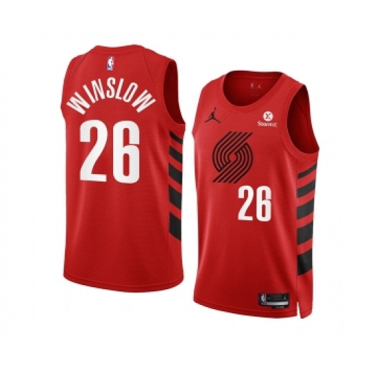 >Men's Portland Trail Blazers #26 Justise Winslow 2022-23 Red Statement Edition Swingman Stitched Basketball Jersey