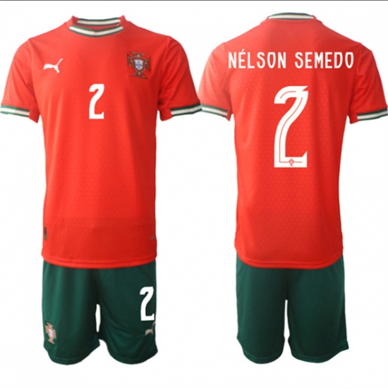Men's Portugal Team #2 Nélson Semedo 2025 Red Home Soccer Jersey Suit