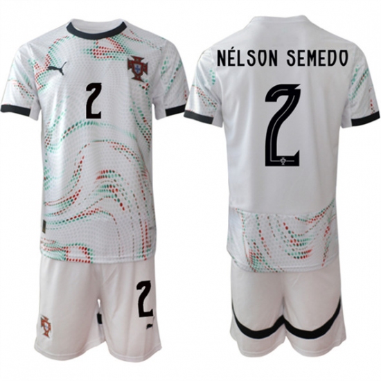 >Men's Portugal Team #2 Nélson Semedo 2025 White Away Soccer Jersey Suit