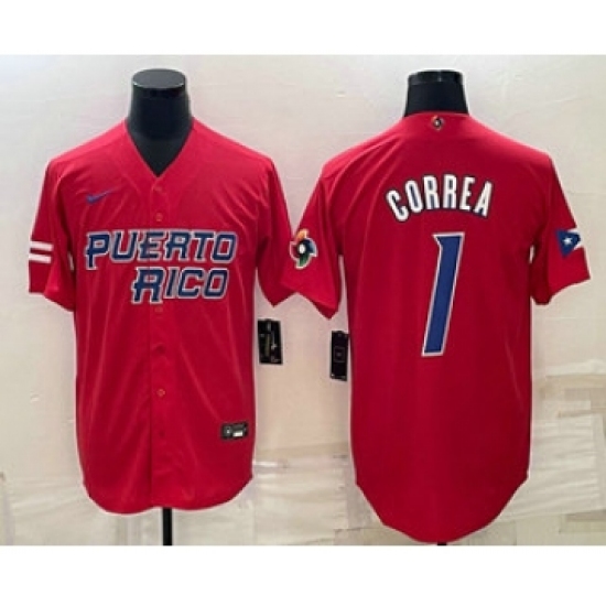 Men's Puerto Rico Baseball #1 Carlos Correa 2023 Red World Baseball Classic Stitched Jerseys