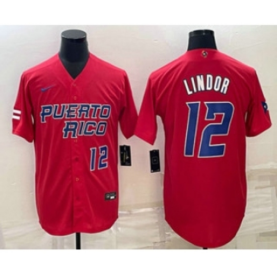 Men's Puerto Rico Baseball #12 Francisco Lindor Number 2023 Red World Baseball Classic Stitched Jerseys