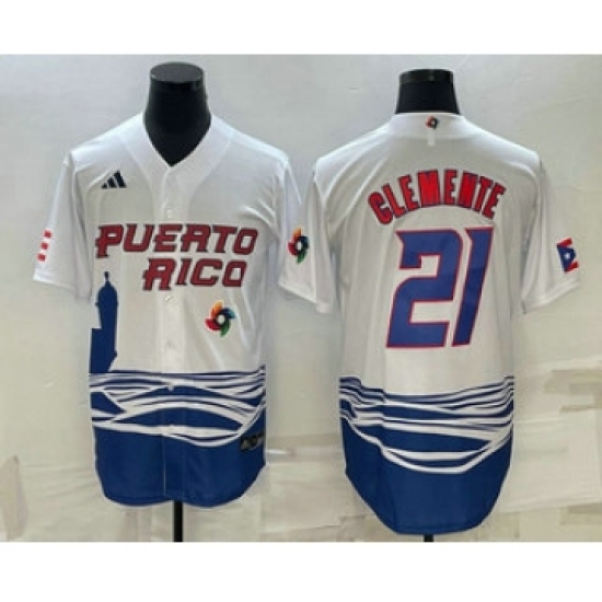 Men's Puerto Rico Baseball #21 Roberto Clemente 2023 White World Baseball Classic Stitched Jersey