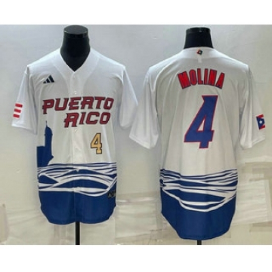 Men's Puerto Rico Baseball #4 Yadier Molina 2023 Red World Baseball Classic Stitched Jersey