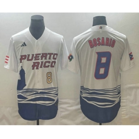 Men's Puerto Rico Baseball #8 Eddie Rosario Number 2023 White World Classic Stitched Jerseys
