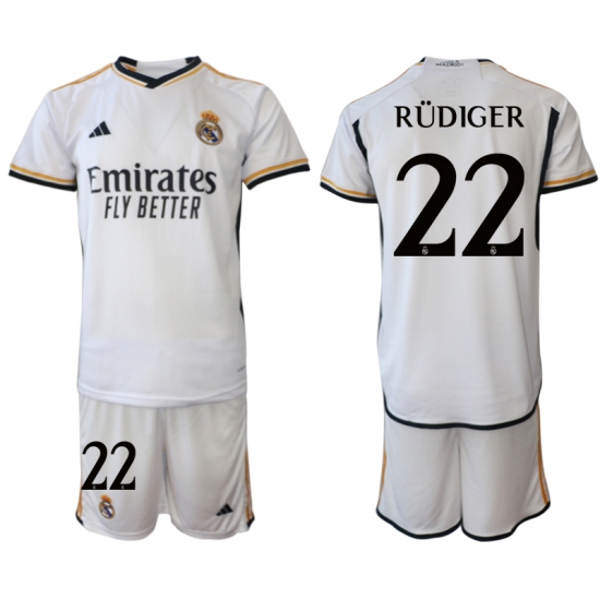 Men's Real Madrid #22 Rudiger 2023-24 White Home Soccer Jersey
