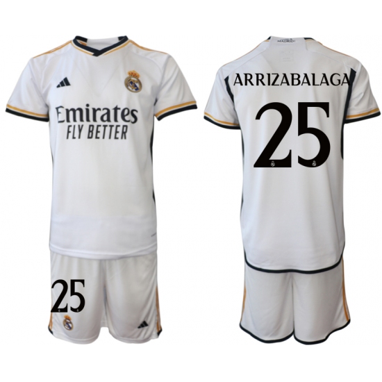 Men's Real Madrid #25 Arrizabalaga 2023-24 White Home Soccer Jersey