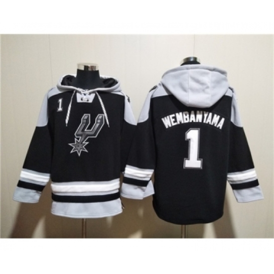 >Men's San Antonio Spurs #1 Victor Wembanyama Black Ageless Must-Have Lace-Up Pullover Hoodie
