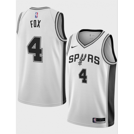 Men's San Antonio Spurs #4 De'Aaron Fox White 2024-25 Association Edition Stitched Basketball Jersey