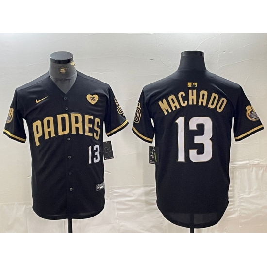 Men's San Diego Padres #13 Manny Machado Black Gold With Cool Base Stitched Baseball Jersey