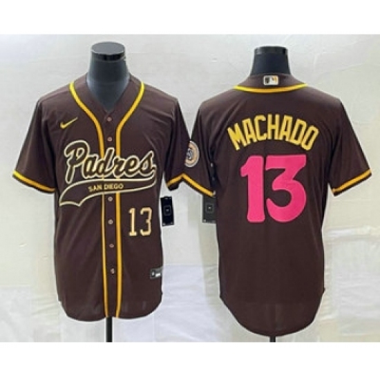 >Men's San Diego Padres #13 Manny Machado Number Brown NEW 2023 City Connect Cool Base Stitched Jersey