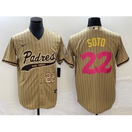 Men's San Diego Padres #22 Juan Soto Number Tan Pinstripe 2023 City Connect Cool Base Stitched Jersey