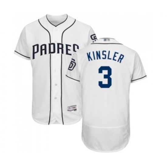 Men's San Diego Padres #3 Ian Kinsler White Home Flex Base Authentic Collection Baseball Jersey