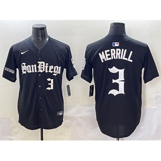 Men's San Diego Padres #3 Jackson Merrill Number Black NEW 2023 City Connect Cool Base Stitched Jersey