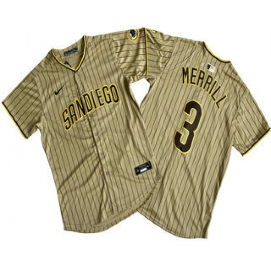 Men's San Diego Padres #3 Jackson Merrill Khaki Pinstripe Limited Stitched Jersey