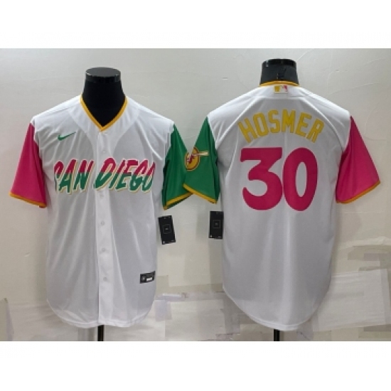 >Men's San Diego Padres #30 Eric Hosmer White 2022 City Connect Cool Base Stitched Jersey