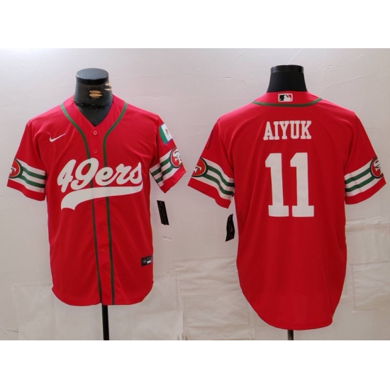 >Men's San Francisco 49ers #11 Brandon Aiyuk Red Mexico Cool Base Stitched Baseball Jersey