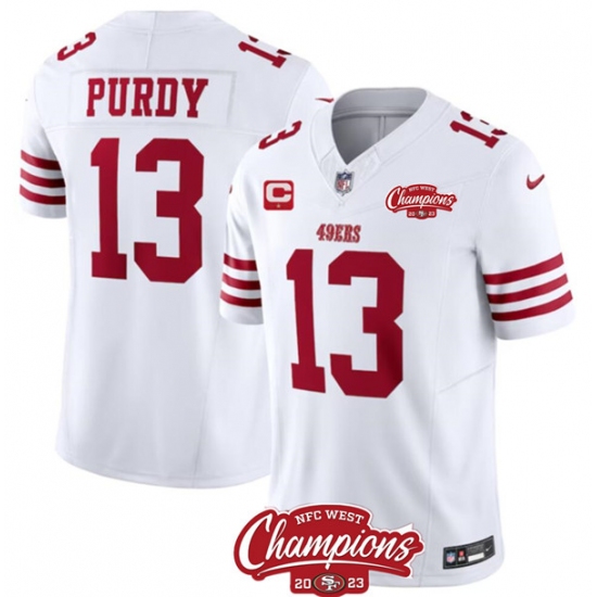 Men's San Francisco 49ers #13 Brock Purdy White 2023 F.U.S.E. With 1-star C And NFC West Champions Football Stitched Jersey